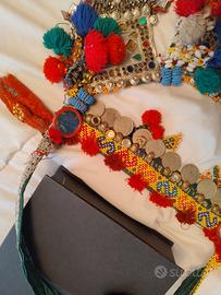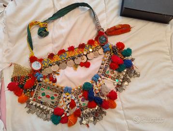 In vendita una magnifica collana cerimoniale originale delle tribù nomadi Kuchi (Afghanistan). Si tratta di un pezzo d'artigianato etnico di alta qualità, caratterizzato da una struttura complessa e una ricchezza di decorazioni che lo rendono un vero oggetto da collezione o un accessorio moda unico.