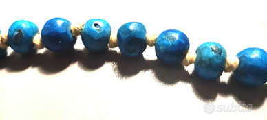 Collana a sassi di puro Turchese di Bali (Indonesia) del peso di 95gr. ; lunghezza totale delle 40 perle: 54cm; diametro variabile di ciascuna perla: cm.1,3/1,5.