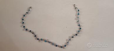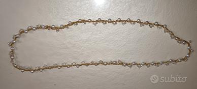 collana uncinetto con perline bianche e cristallini 66 cm. circonferenza collo