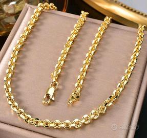 VENDO elegante collana UNISEX a maglia groumette rivisitata, caratterizzata da una luminosità eccezionale grazie alla placcatura in ORO18K. Un pezzo di alta bigiotteria artigianale italiana, ideale per chi cerca un accessorio di lusso, solido e resistente.