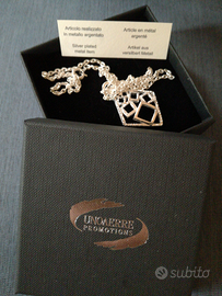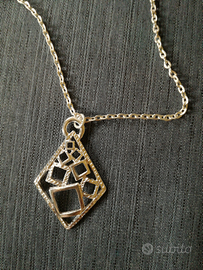 Girocollo con ciondolo con disegni geometrici in metallo argentato. Mai indossata. Venduta in scatola originale con suo certificato.