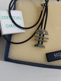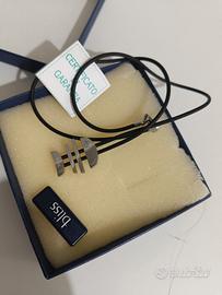 collana uomo Bliss segno zodiacale pesci,in cuoio e acciaio,nuova ancora in confezione originale