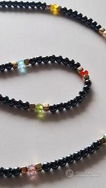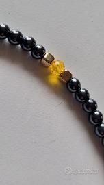 Collana Uomo fatta a Mano di Ematite e Cristalli Handmade Necklace Artigianato. Realizzata a mano con perline di ematite, cristalli sfaccettati e cubi di ottone placcato. Lunghezza 48 cm. Nessuna produzione automatizzata. Le perle sono infilate pazientemente a mano, una alla volta, con filo resistente. CURA DELLA COLLANA Per mantenere l'aspetto e la durata della collana evita il contatto con l'acqua, saponi, profumi e prodotti chimici. Toglila prima di fare sport o attività manuali prolungate. Conservare in luogo asciutto quando non indossata. CONFEZIONE REGALO Ogni mia creazione è pensata per essere un regalo per gli altri o per sé stessi, ecco perché i prodotti 💙LuaCreazioni 💙sono confezionati con cura
