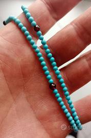 Collana cm. 47 con vere perline in turchese e granato e chiusure in acciaio. Disponibile a consegna a mano in zona.