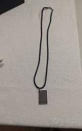 Misura collana: 46cm Misura Pendente: 3cm Tipologia gioiello: Collana con gancio e cordino in tessuto nero Combinazione materiali: Acciaio, Swarovski neri, tessuto Scatola originale MAI INDOSSATA NUOVA