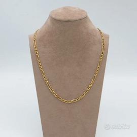 Collana uomo piena in oro giallo 18 kt grammi 14,8 e lunga cm. 50 . La maglia è classica con una lavorazione satinata e lucida. Prodotto made in Italy munito di marchio di fabbrica come da legge e completo di confezione e certificato di qualità rilasciato dalla Gioielleria.