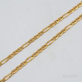 Collana uomo piena in oro giallo 18 kt grammi 14,8 e lunga cm. 50 . La maglia è classica con una lavorazione satinata e lucida. Prodotto made in Italy munito di marchio di fabbrica come da legge e completo di confezione e certificato di qualità rilasciato dalla Gioielleria.
