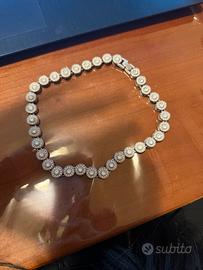 Collana choker tennis con brillantini effetto Swarovski ✨ Vendo elegante collana choker aderente al collo, realizzata con una fila di piccoli brillantini effetto diamante che donano una luce bellissima e raffinata. Perfetta per occasioni speciali, serate eleganti oppure per dare un tocco glamour anche a un look semplice 💎 ✔ Modello: choker (corta, aderente al collo) ✔ Stile: tennis con brillantini luminosi ✔ Condizioni: ottime / come nuova ✔ Chiusura regolabile e sicura Molto simile allo stile Swarovski, elegante e senza tempo. Ideale anche come regalo 🎁 Prezzo: 30€ trattabili Disponibile per spedizione