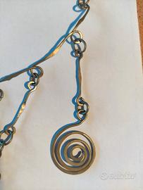 Graziosa collana artigianale vintage fatta con filo metallico con tre ciondoli a forma di spirale. Lunghezza 24 cm.