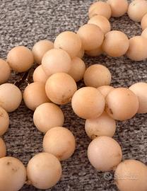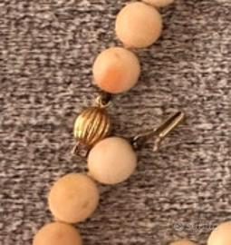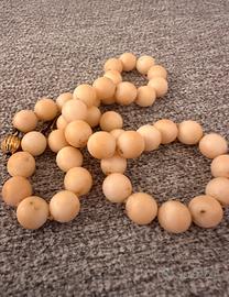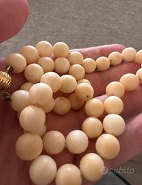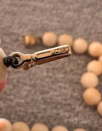 Elegante collana vintage anni ’60 composta da perle color avorio con splendida chiusura sferica rigata in oro 18 kt punzonato 750.