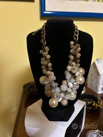Elegante collana vintqge con logo su poastrina. Allacciatura regolabile. Bellissimo ed elegante gico di perle grandi e piccole. Qncora in buono stato. Solo per amanti del Vintage e dell’eleganza.