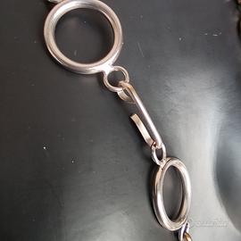 • Design: Struttura articolata composta da diverse file di catene a maglia sottile intrecciate tra loro, intervallate da grandi anelli di congiunzione lisci che donano movimento al pezzo.