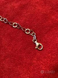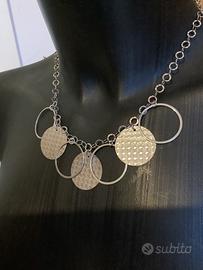 Bellissima collana con ciondoli a cerchio in argento 925 . Molto bella anche la maglia della catenina il cui moschettone si chiude direttamente nell’ultimo anello della collana.