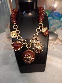 Splendida collana a catena dorata con charms, perfetta per chi ama gli accessori unici e di carattere. Il design combina elementi classici e simbolici in uno stile caldo e sofisticato.