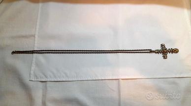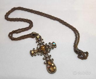 Collana Vintage Con Ciondolo a Croce Crocifisso Con Scatola Necklace Rhinestone-Decorated Cross Pendant