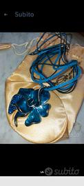 Collana vintage con fiore con smalti firmata con piastrina mai usata
