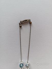 Collana lunga a catenella, con pendente a goccia composto da cristalli sfaccettati in bianco e azzurro. Gioiello di alta bigiotteria, originale vintage anni 1960.