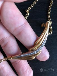Collana Vintage in Oro 750 e Diamantini Naturali da 0.30 kt Peso 10.6 g. Lunghezza 45 cm. Punzonatura visibile nelle foto. Solo consegna a mano.