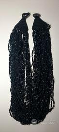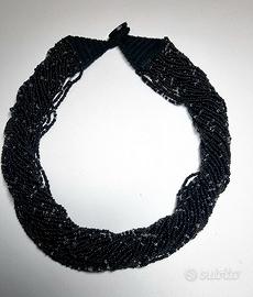 Black Lagoon - Collana vintage multifilo con perle di vetro nere, 58 cm, fatto a mano, Italia, anni '80-'90