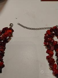 collana tripla con pietre color rosso Borgogna Bordeaux lunga 50cm vintage