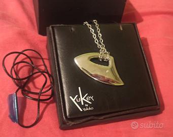 Collana in acciaio con pendente e brillantino incastonato. Lunghezza: 47 cm Dimensioni pendente: 3,7 cm x 5 cm Chiusura con moschettone o laccetto