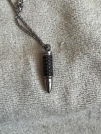 Collana Zancan in argento 925 con proiettile e pietre nere , collana e pendente in argento peso 11,60 gr pendente ricoperto da spinelli neri , nesun difetto pagato 375 euro .