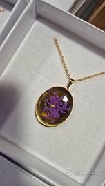 Ogni collana è un pezzo unico, realizzato a mano con cura e passione. I fiori veri vengono selezionati, essiccati e inglobati in resina trasparente per preservarne la bellezza naturale nel tempo, creando gioielli delicati ma ricchi di significato.