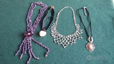 Vendo alcune collane di fine bigiotteria, molto belle con : Pietre o Brillantini o Fiori e Farfalle smaltati, o Ciondolo cuore di Perline e Ciondolo Cammeo con girocollo di velluto nero, 2 Collier con 5 fili di Perle bianche e un Torchon di 4 fili di Perline bianche, tutte in ottime condizioni: -Collane Smaltate - Collana dorata con Brillantini -Collier di Perle -Torchon di Perle EURO 25 caduna oppure 2 collane per 40 EURO - Le altre 4 collane Fantasia : Tutte per EURO 40 Per ulteriori Informazioni o per Acquisto TELEFONATEMI al N° 3473846951 senza impegno.