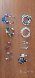 5 parure, 3 bracciali piu uno con orecchini abbinati ,2 paia di orecchini, una collana nera con 3 ciondoli da cambiare, tutto 50 euro.