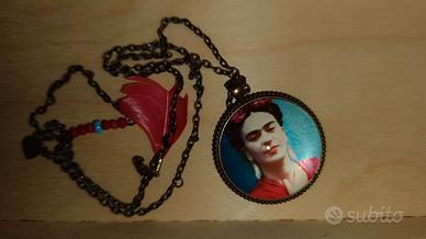 Collane con catena ottone color oro invecchiato e cristalli, nappine o charms. ciondolo con cabochon con disegno Mary Poppins , Frida Kahlo o Piccolo principe in vari colori .