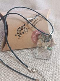 Collane con ciondoli in resina epossidica made in Italy decorati con materiali vari, realizzati artigianalmente.