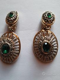 Collana con orecchini colore VERDE Collana con catenina color oro, impreziosita da pendolo tutto intarsiato e con applicazione di pietra color verde smeraldo. Orecchini a clips con pendolo, tutto intarsiato con applicazione di pietra color verde smeraldo che richiamano la collana. Alta bigiotteria. FOTO -------1-------2--------3 --------------------------------------------------------------- COLLANA CON ORECCHINI COLOR ARGENTO Collana color oro, impreziosita da applicazioni con piccoli brillantini e maglia lavorata. Orecchini con clips come da foto. Alta bigiotteria. FOTO ----------4--------5---------6