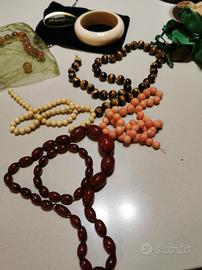 Collane di materiali diversi, corniola, ematite, giada, occhio di tigre, avorio , corallo rosa, corallo bianco. Erano di mamma e nonna, non ci sono le chiusure che erano in oro e sono state riutilizzate.