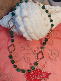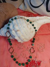 Collana in perle di occhio di tigre, con pendente albero della vita con occhio di T. collana in Malachite pietra naturale, collana in ematite con pietra centrale 14mm. in onice nera, bracciale occhio del male in perle naturali.