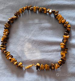 5 tipi diversi di pietre dure : ***LAPISLAZZULI: 50 sfere da 8 mm, lunga 47 cm, peso 43 gr. Gancio Vintage in Ottone ad incastro. Euro 75- Riconoscibile opaca e fredda al tatto, per autenticità. Pietra dalle proprietà spirituali molto potenti. Viene utilizzata per accedere alla conoscenza sacra e connettersi al divino. Purezza mentale e spirituale, dona saggezza e favorisce l'integrità delle relazioni. ***OCCHIO DI TIGRE: chips di 5 cm, lunga 43 cm, peso 61 gr. Gancio ottone a vite. Euro 55 Proprietà protettive contro energie negative, promuove coraggio, determinazione e chiarezza mentale. Talismano per attrarre ricchezze e superare le paure. ***AMETISTA: filo di cotone con Chips medie di 5 cm. lunga 41 cm complessivamente 84 cm, peso 75 gr. Euro 20 Realizzazione ed equilibrio interiore.E' la pietra che ti aiuta a trovare il tuo vero Io, superando momenti di confusione e tristezza, imparando ad affrontare con più consapevolezza le situazioni che ti si presentano. ***CORNIOLA: Filo di cotone con Chips di 3, 4, 5 mm. lunga 42 cm complessivamente 84 cm, peso 48 gr, con scatola metallica e varie descrizioni. Euro 20. Proprietà energetiche e protettive, promuovendo vitalità, coraggio, creatività e fiducia in se stessi. Benefica per digestione, circolazione sanguigna e sistema riproduttivo. Allevia dolori reumatici, stimola processo di purificazione del sangue. ***AMAZZonite: Filo di cotone con Chips di 3, 4 mm. lunga 43 cm complessivamente 86 cm. peso 47 gr. con scatola metallica e varie descrizioni. Euro 20. Proprietà calmanti, riequilibranti e protettive, favorisce la comunicazione autentica e l'espressione creativa. Rilassa muscoli e rafforza le ossa e protegge da onde elettromagnetiche. Spedizione 10 euro No Tuttosubito- Le mie garanzie, sono visibili qui, attraverso 53 super recensioni positive e ho inserito oltre 1000 articoli!!! Telefono/Whatsapp/ SMS
