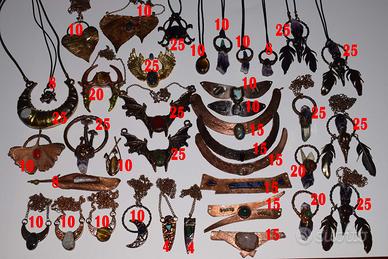 Questi gioielli sono stati creati artigianalmente con la tecnica dell'elettroformatura, un processo elettro chimico per la deposizione del rame... Perfetti per chi vende nei mercatini di artigianato. Questo lotto è perfetto per chi fa i mercatini di artigianato. Il prezzo totale dei gioielli è di €587 però si applica lo sconto sul lotto completo che costa €500. Se siete interessati solo ad alcuni pezzi, osservate le foto per vedere il prezzo di ogni singolo pezzo e contattatemi con la vostra scelta.
