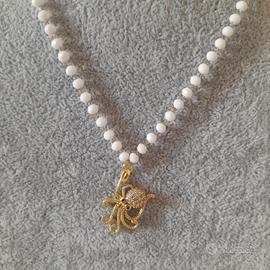 Collane estive artigianali in acciaio inossidabile con cristalli sfaccettati e charms in metallo smaltato o in ottone placcato oro.