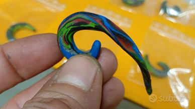 varie collane fatte a mano in argilla polimerica e dilatatori per orecchie