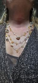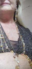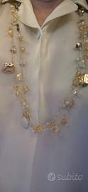 #Collane in filo d'orato con #cristalli Swarovski lavorate ad uncinetto per gioelli senza tempo, eleganti e preziose, lunghe ca. 40 cm. Realizzabili con cristalli di varie tonalità, singolarmente o in #parure con #bracciale, #orecchini, #anelli abbinati. Perfetti come #regalo per #Natale, #Anniversario, #Compleanno. Prezzo da concordare, solo collana 23 €, parure completa 55 €.