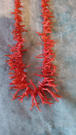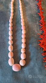 due collane in corallo rosa e rosso da rinfilare, lunghezza 50 cm quella rossa frangiata e 55 cm quella rosa con perle in gradazione usate poco #collane#corallo#perle