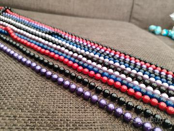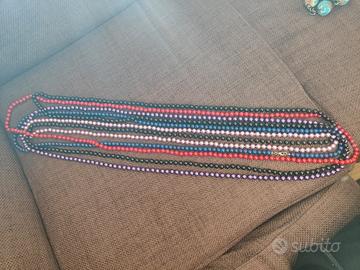 collane molto lunghe in plastica colore rosso - 2 nere - viola - rosa - blu in tutto sono 6 vendo a 5€ cad tutte e sei le lascio a €20 ritiro a Milano in piazzale Susa o a Rozzano.