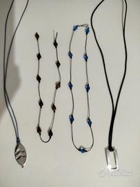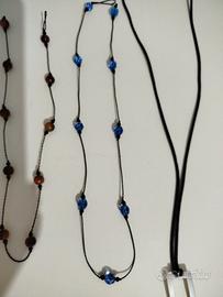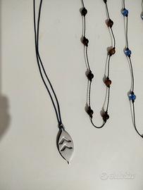 Due collane con perline una di volere azzurro l altra con il marrone, indossate sono di grande effetto, e Due collane con ciondoli in acciaio molto semplici e particolari.