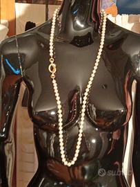 1)collana lunga con chiusura dorata a nodo,montata con nodini:130,00euro