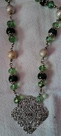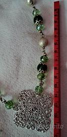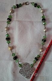 vendo collana Handmade con cristalli e vetro verdilunga 55cm
