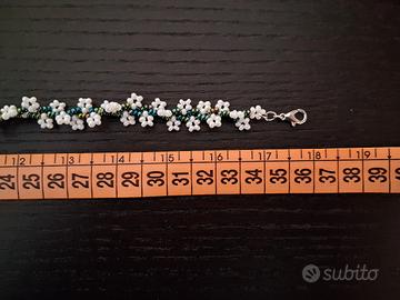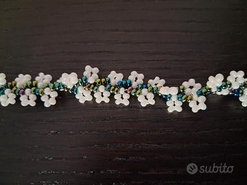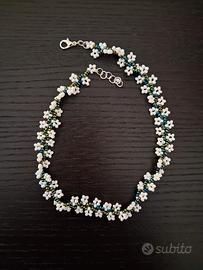 Collana girocollo choker realizzata interamente a mano con ago e filo in tessitura di bellissime perline in vetro di qualità Europea Preciosa bianchissime e verdi dalle sfumature cangianti, stupende 🌺 Gioiello resistente con filo di eccellente qualità e metallo anallergico nickel free 🌺 Lunghezza 34 cm regolabile fino a 36 cm La lavorazione richiede diverse ore di impegno e dedizione 💜 Perfetta anche come idea regalo, handmade with love 💖 Prezzo 10€ 🌺