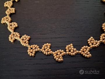 Collana girocollo choker realizzata interamente a mano con ago e filo in tessitura di bellissime perline in vetro di qualità Europea Preciosa color oro, stupende 🌺 Gioiello resistente con filo di eccellente qualità e metallo anallergico nickel free 🌺 Lunghezza 35 cm con possibilità di aggiungere anellini di allungamento su richiesta e senza costi aggiuntivi per renderla regolabile. La lavorazione richiede diverse ore di impegno e dedizione 💜 Perfetta anche come idea regalo, handmade with love 💖 Prezzo 10€ 🌺
