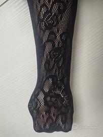 Collant donna neri, a rete con motivo floreale. Taglia 1/2. Calzedonia