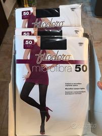 Collant Filo d'Oro microfibra 50 den coprente opaco taglia 4 L, colore nero, €5,00 il paio.