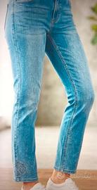 Collection - Jeans Donna con Ricamo Rosa e Strass.