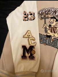 College Off-White x AC Milan in condizioni pari al nuovo mai indossato con maniche in pelle e brillantini